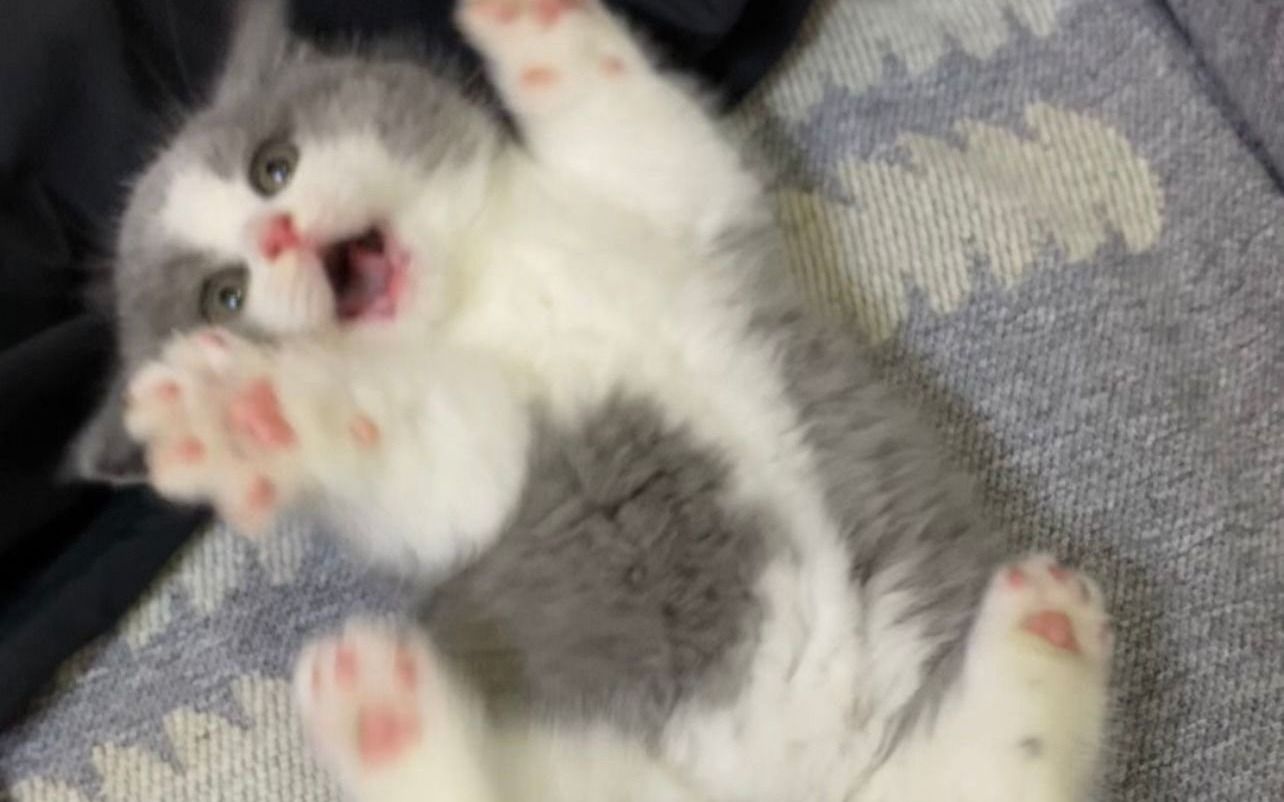 一个月的小奶猫,第一次吃到肉。开 心 到 哭 了!