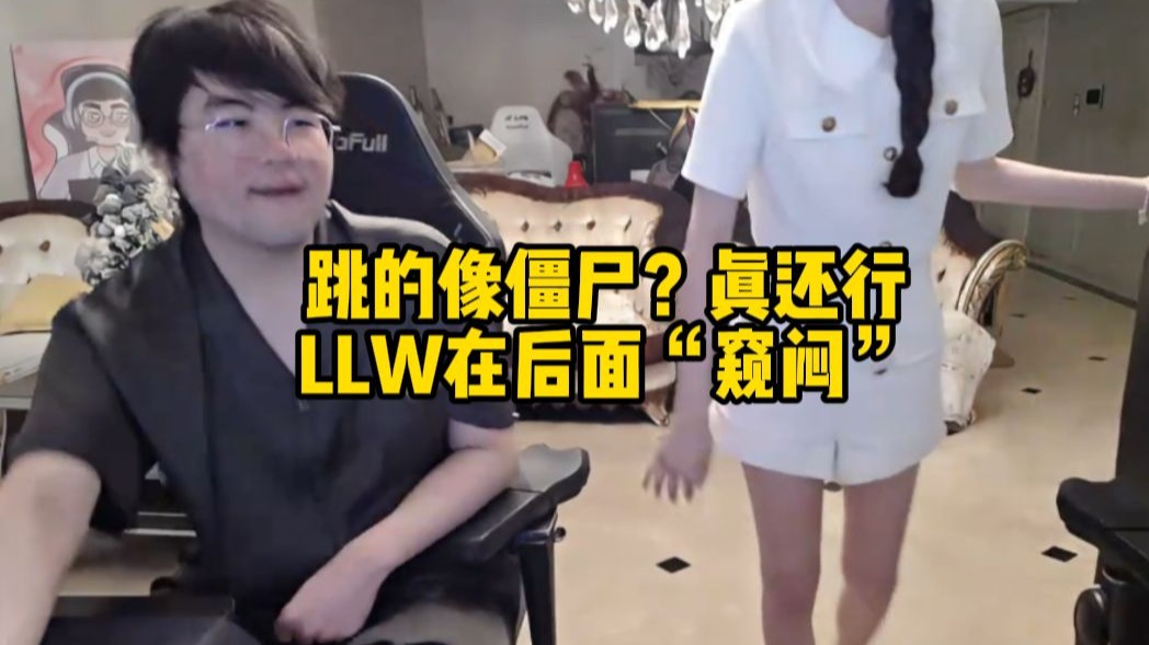 潼潼在姿态播间热舞两支,跳的像僵尸?感觉还行 LLW在后面“窥闷”