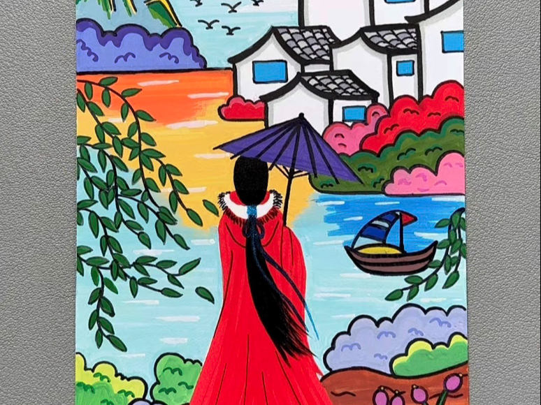 超简单、又有趣的江南春景#创意画 #春天主题画 #跟我一起学画画
