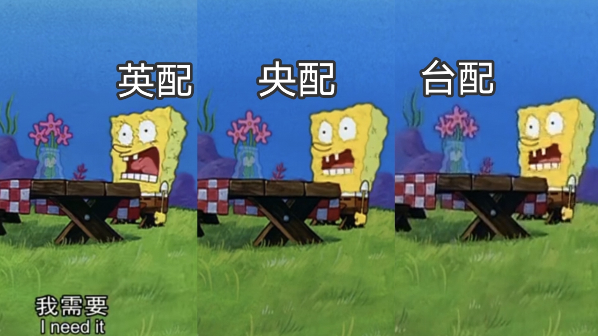 海绵宝宝:我需要!三版配音对比