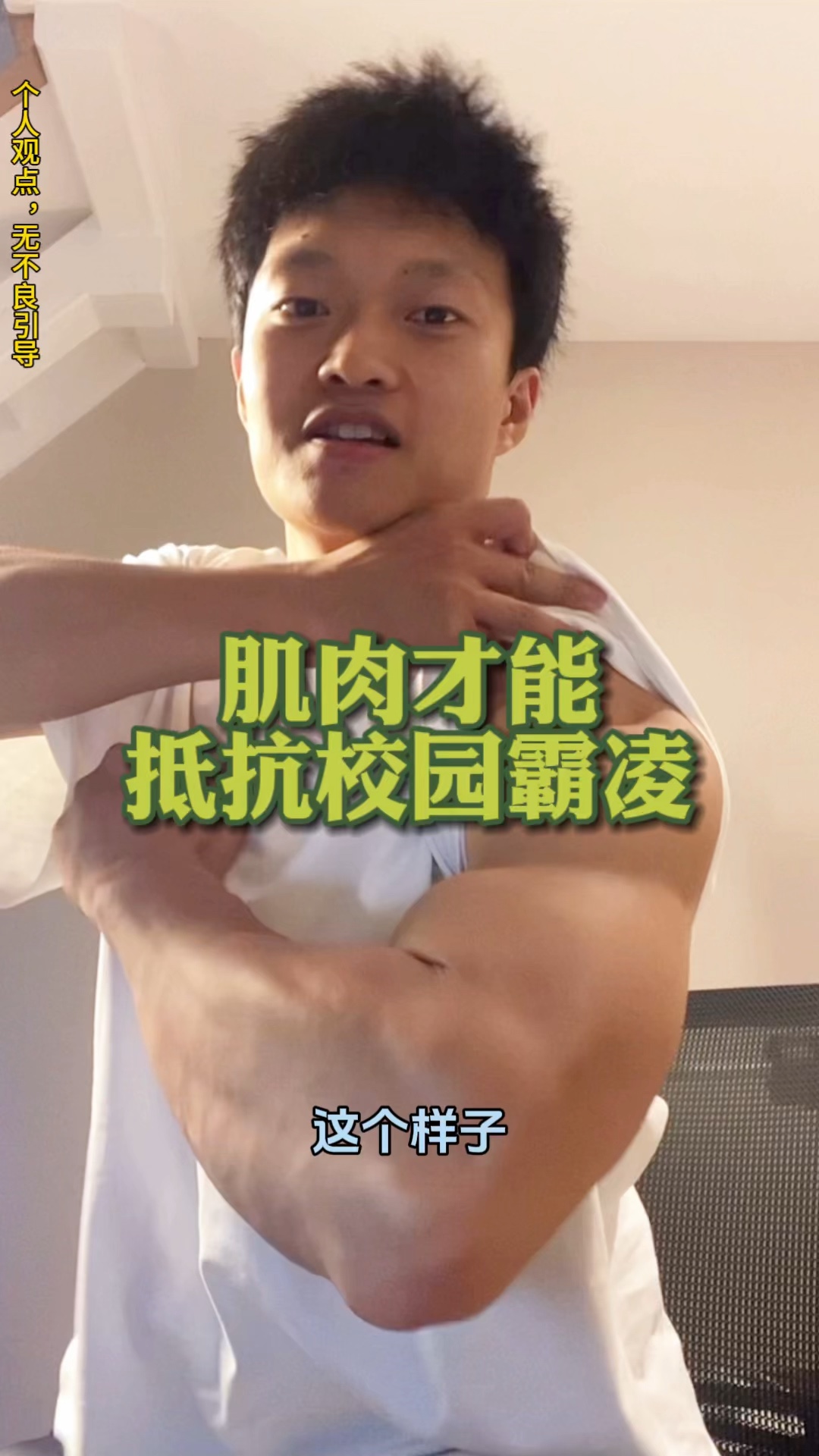 如果你被人欺负,别怕!靠天靠地不如靠自己,把肌肉练起来啊,秀出来,不战而屈人之兵!