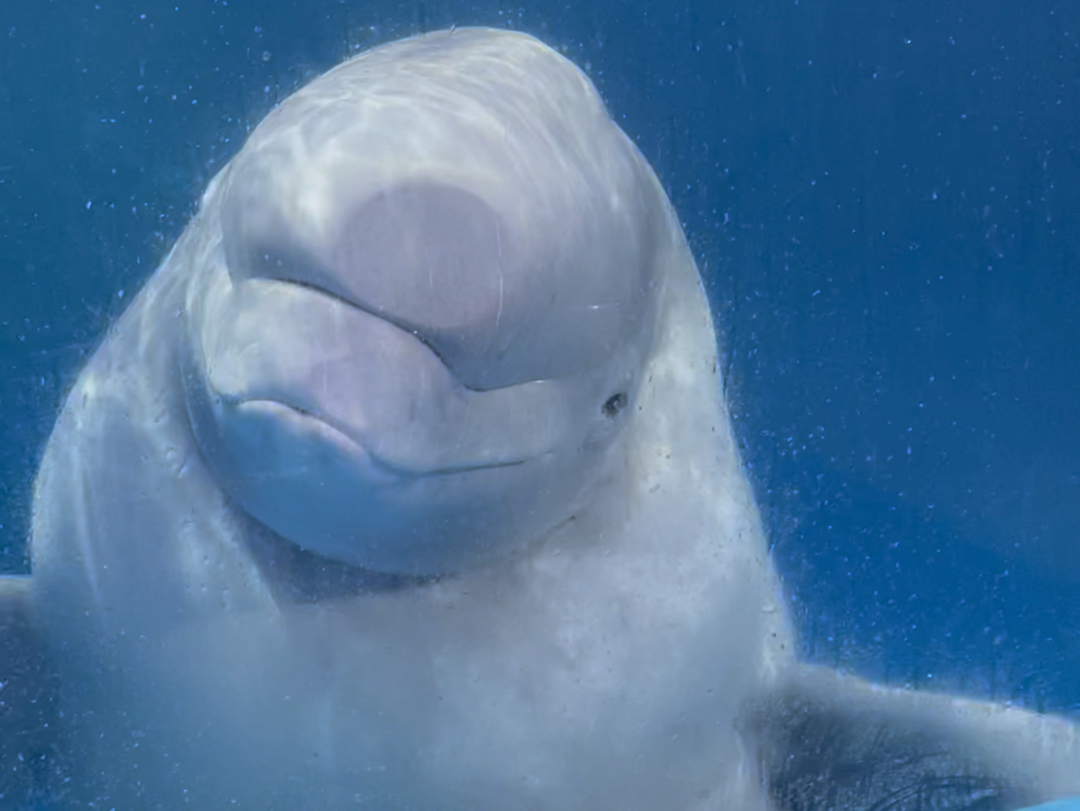 白鲸沉浸式吃冰块