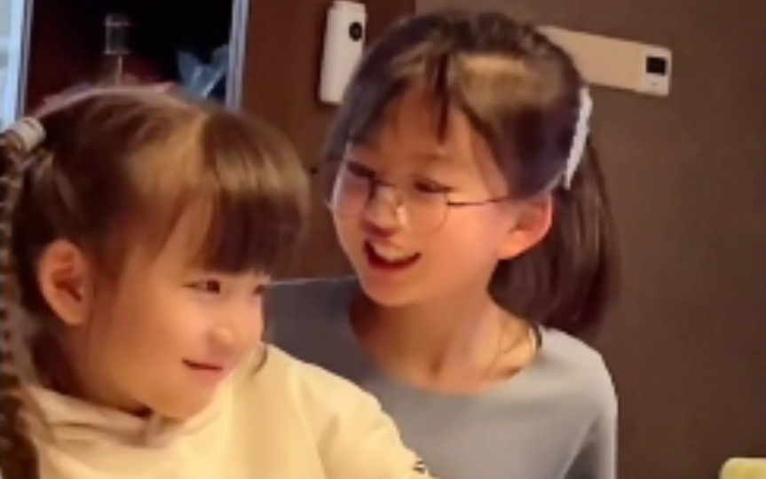 大宝满眼都是对二宝的爱啊,不像姐姐,都像妈妈了!
