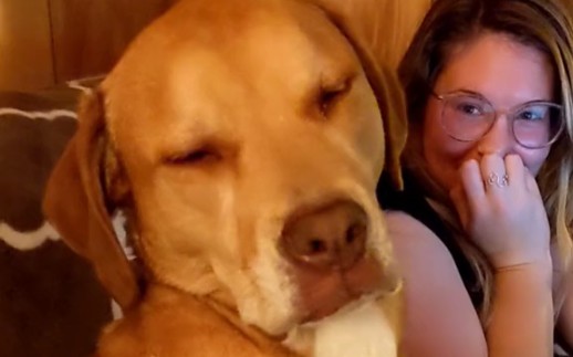 狗狗想陪主人,但又忍不住要睡觉的样子太可爱了