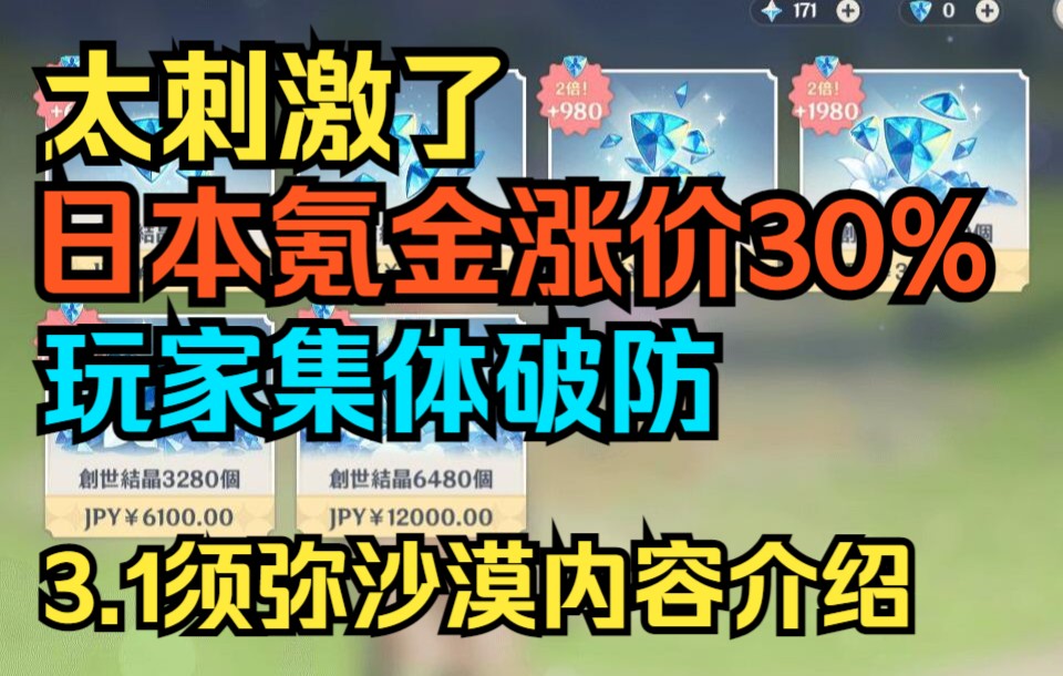 【原神】太刺激了!日本氪金充值涨价30%!日本玩家集体破防热议!3.1须弥沙漠内容介绍!