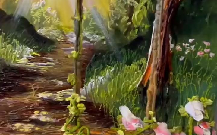 这才是真正的3D画:晃动的秋千,垂落的紫藤花,伸出画卷的枝丫