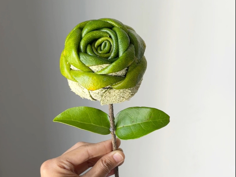 用橘子皮做一朵漂亮的玫瑰花,整个过程真是太神奇了,快跟小朋友一起来试试