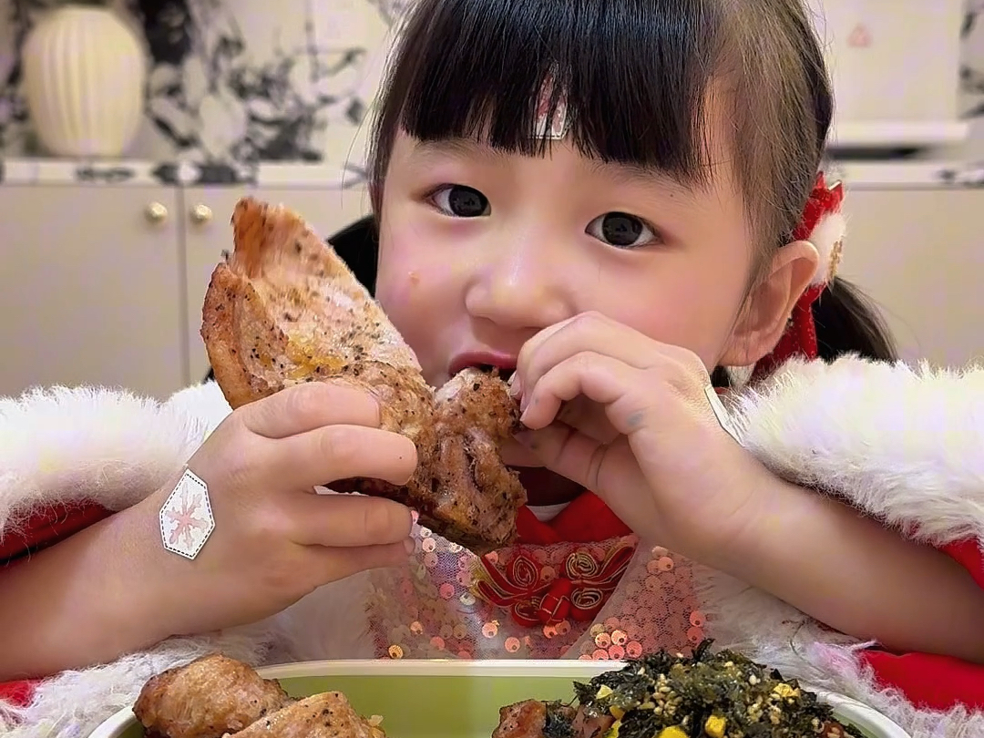 她真的很爱吃饭呀