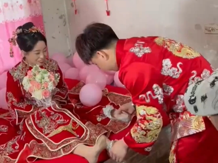 新郎亲自为新娘戴上披肩和项链,有种顶级豪门小姐结婚既视感