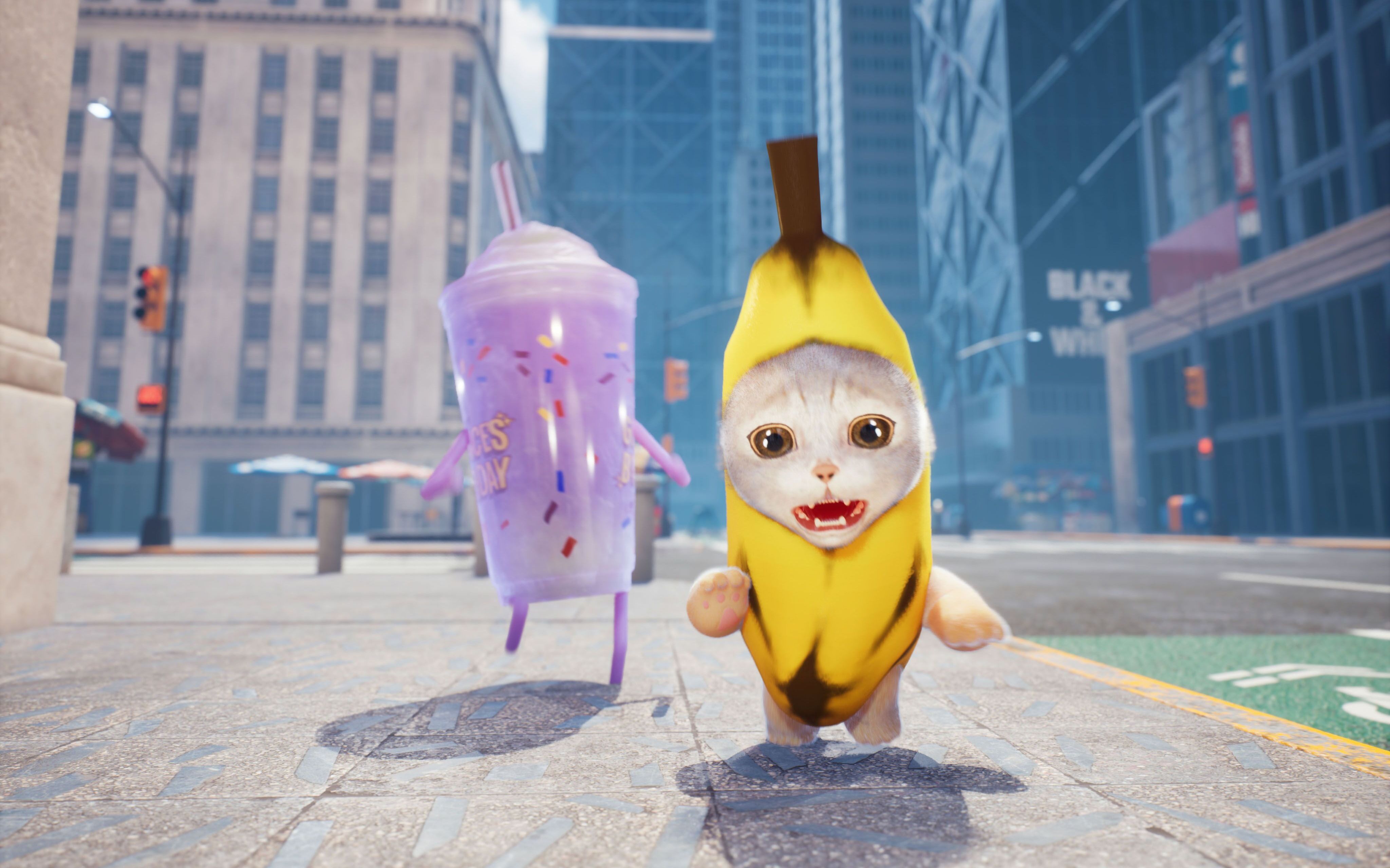 香蕉猫想上厕所,但是队伍很长。幸好有happy猫