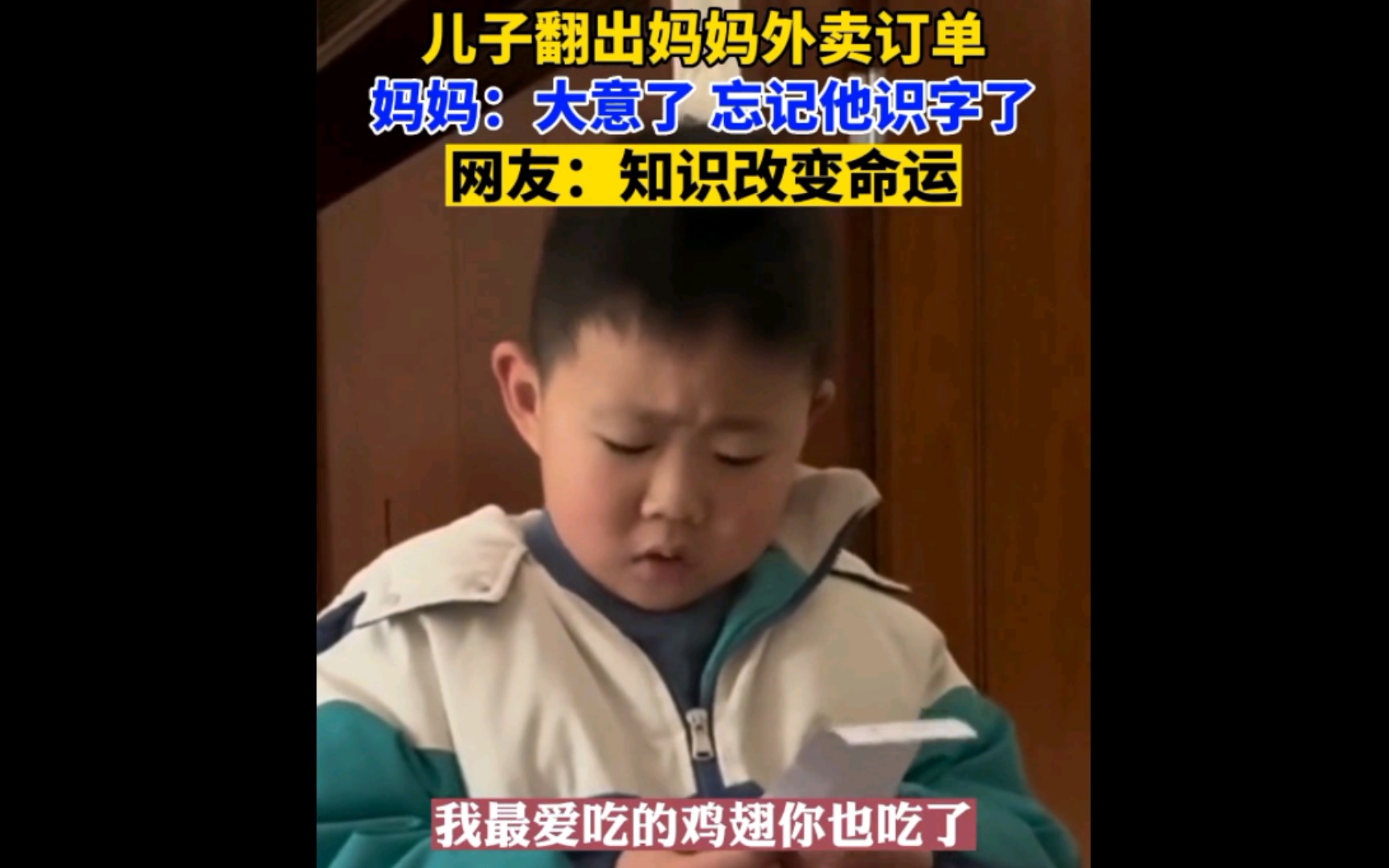 儿子翻出妈妈的外卖订单,妈妈:大意了 忘记他识字了!