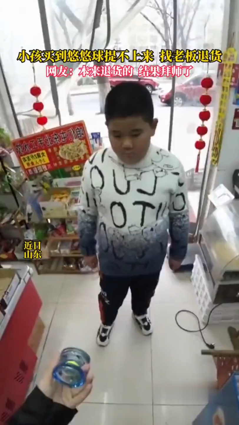 小孩买溜溜球提不上来找老板退货,老板现场表演教学!看傻小朋友!