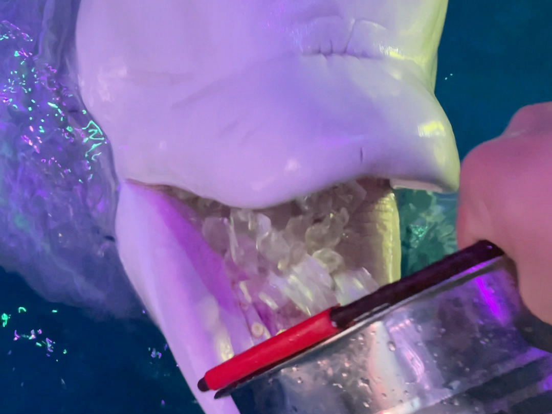 白鲸吃冰块是不需要咀嚼的哦