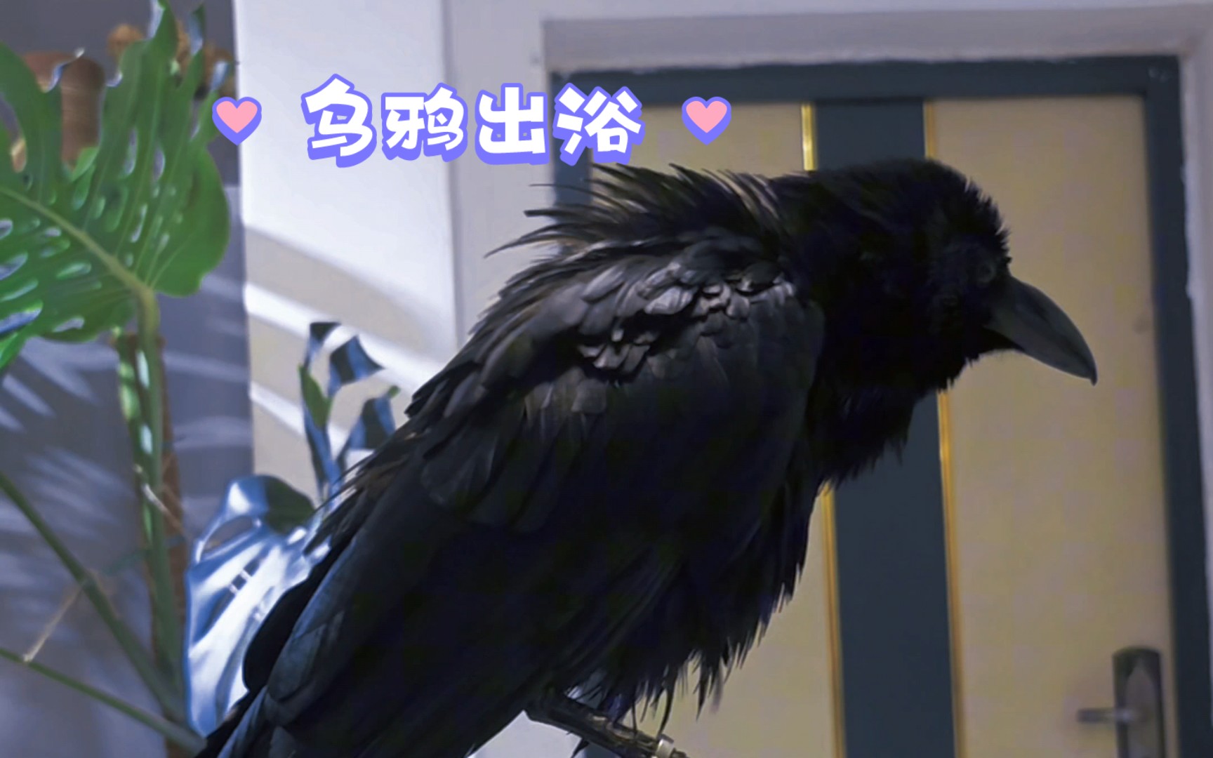 雨滴溅落在乌鸦的黑羽上仿若星空
