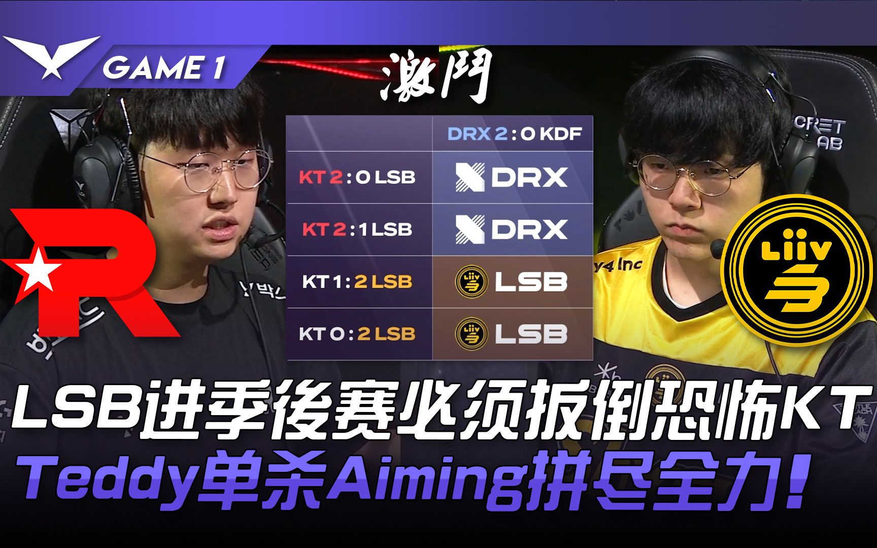 KT vs LSB LSB进季后赛必须扳倒恐怖KT! Teddy单杀Aiming拼尽全力! Game 1 | 2023 LCK夏季赛精华