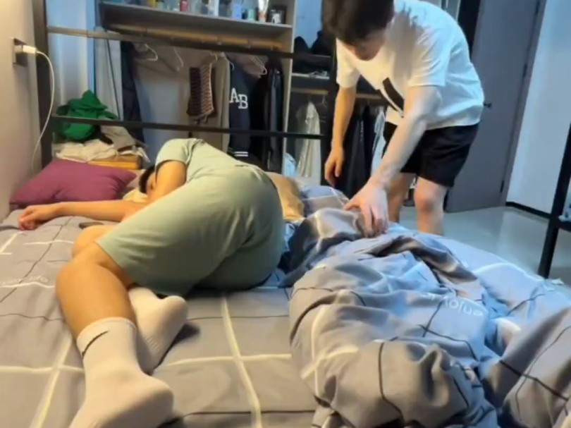 男生和室友在宿含蒙眼抓人,只感觉有人在碰他但怎么也抓不到!!