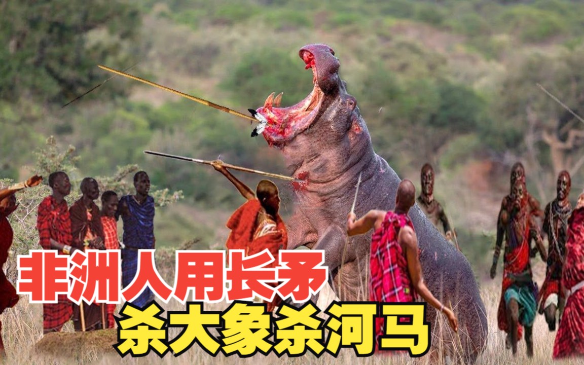 非洲人用长矛狩猎,杀大象杀河马都是轻轻松松的!