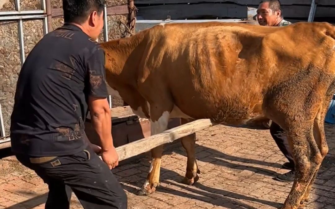 母牛神经痛一顿抽风,被养牛户帅掉渣的儿子安抚