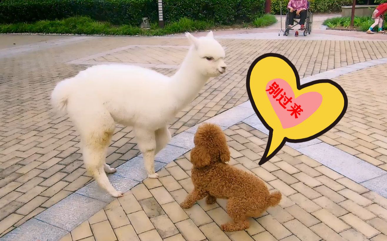 自从上次羊驼一脚踢飞,以后小区里的泰迪看见羊驼都有阴影了