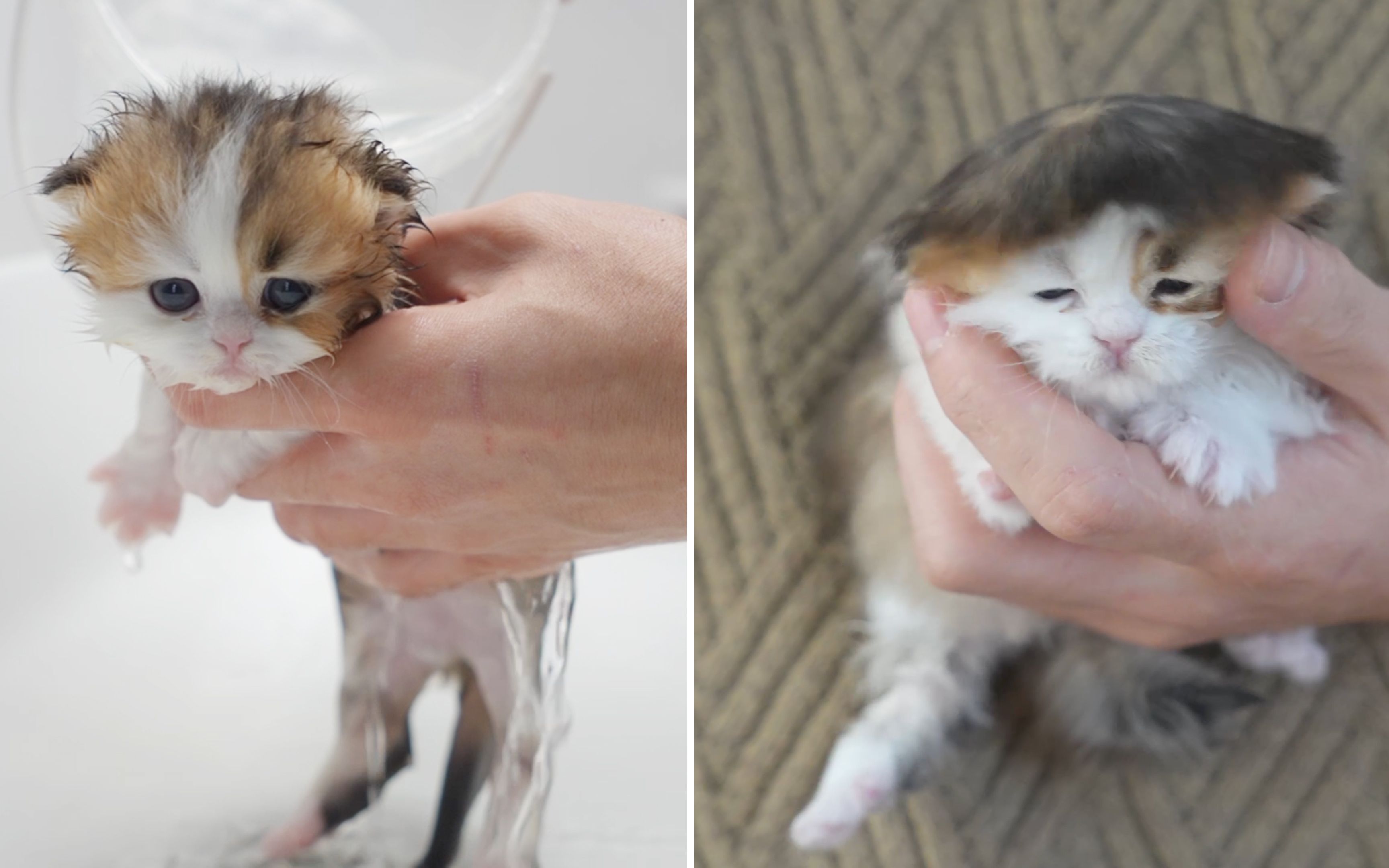 小奶猫洗澡,从三维猫洗成纸片猫了