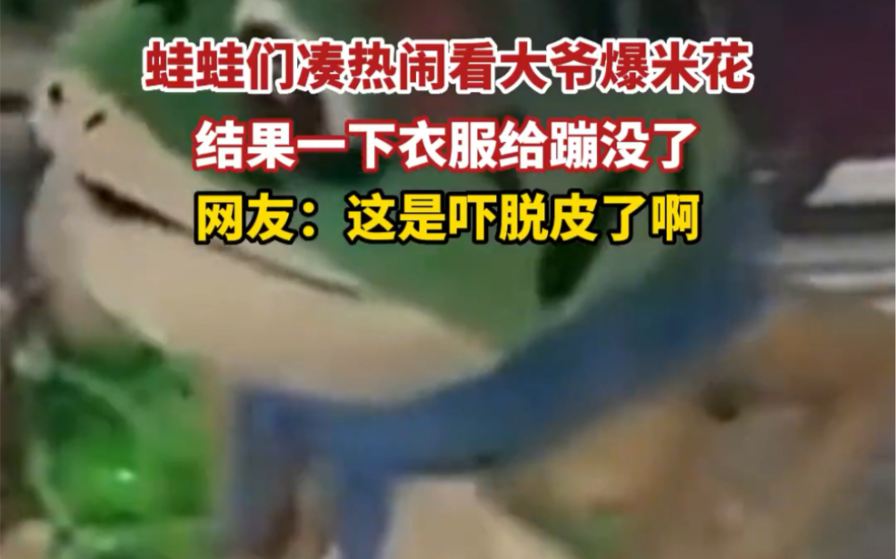 蛙蛙们凑热闹看大爷爆米花,结果一下衣服给蹦没了