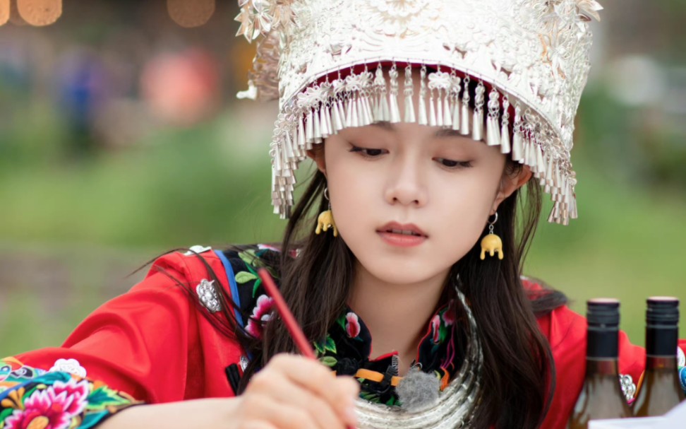 可爱开朗的苗族少女