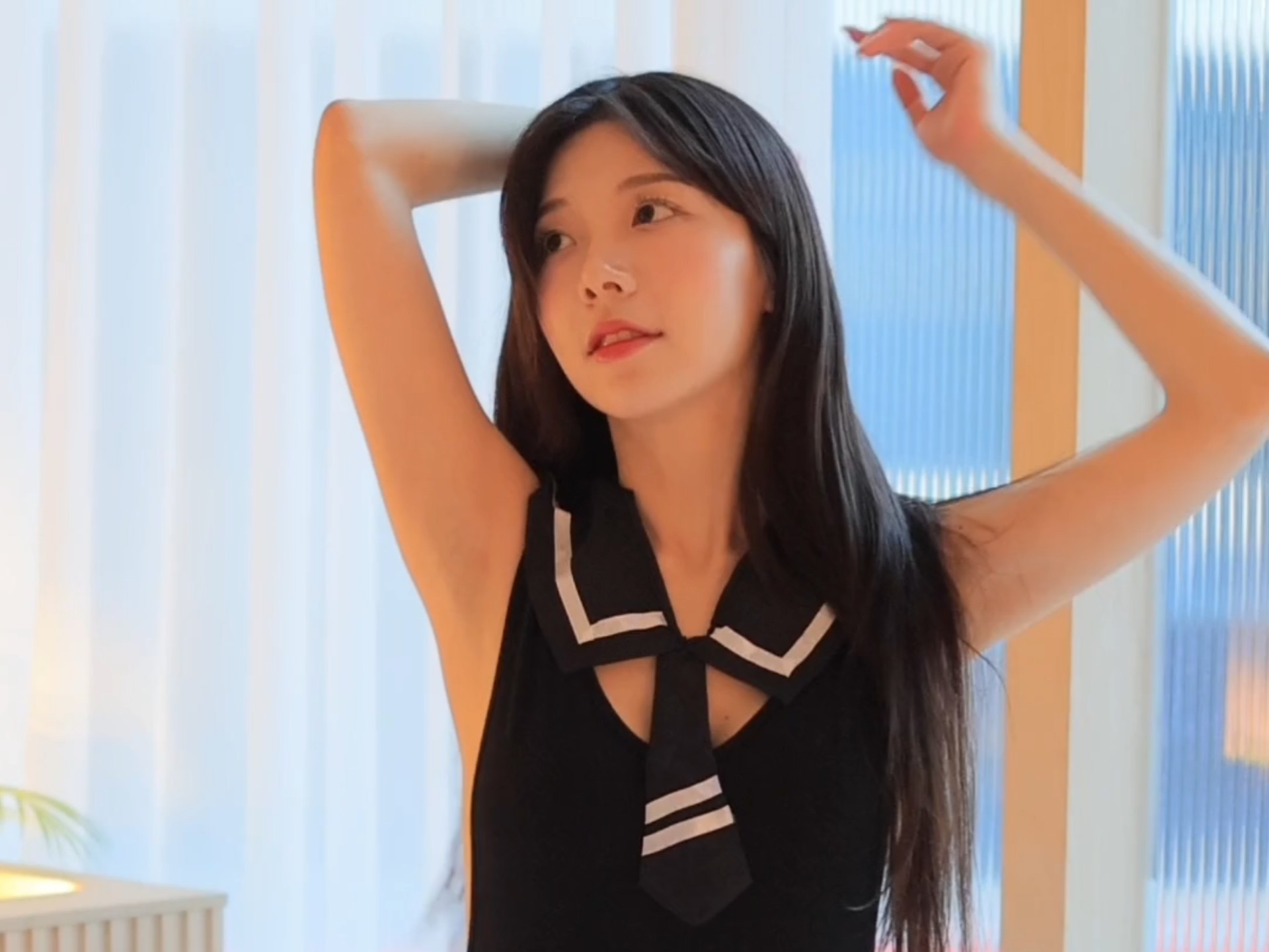 Maarya穿着黑色衣服跳舞