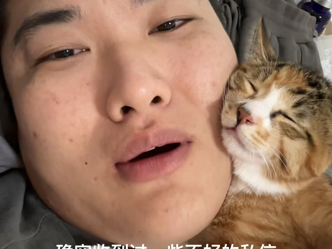 短毛猫第一次给长毛猫舔毛 越舔越生气!!!