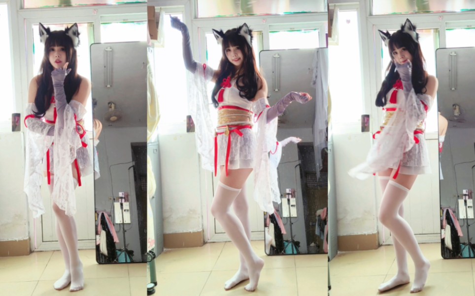 【兔糕糕】是真实不拉腿的白丝女仆妹妹的吃货舞哟