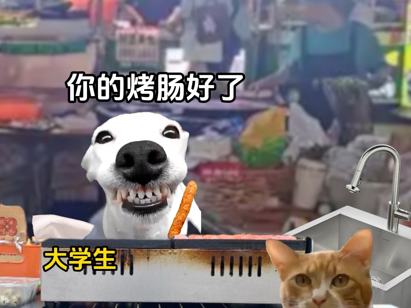 当大学生第一次摆摊#猫meme小剧场#烤肠#真实还原#搞笑#大学生