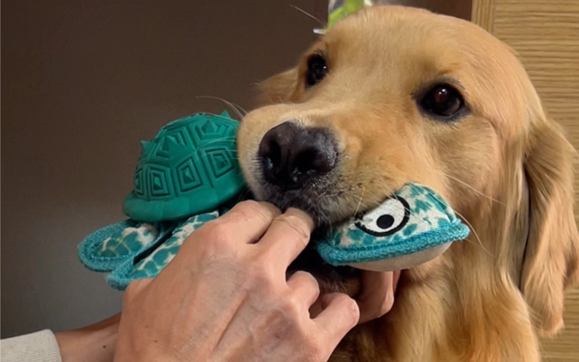 一个天生爱运动的金毛和一根不爱运动的细狗