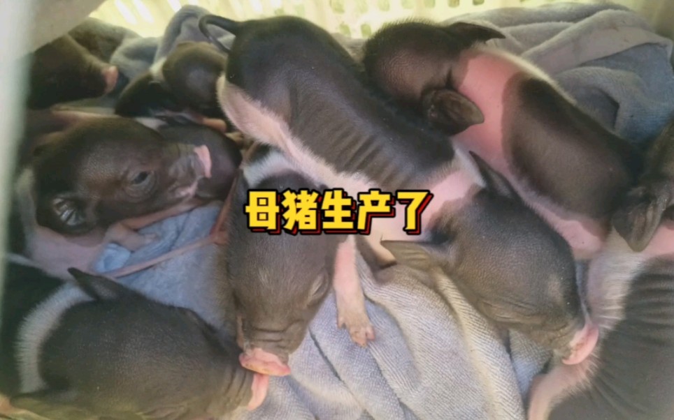 母猪终于生产了。母子平安