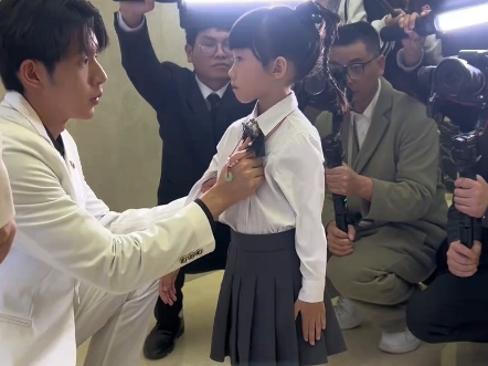 两位短剧演员的个子太高了,上台发言先同步调整话筒高度