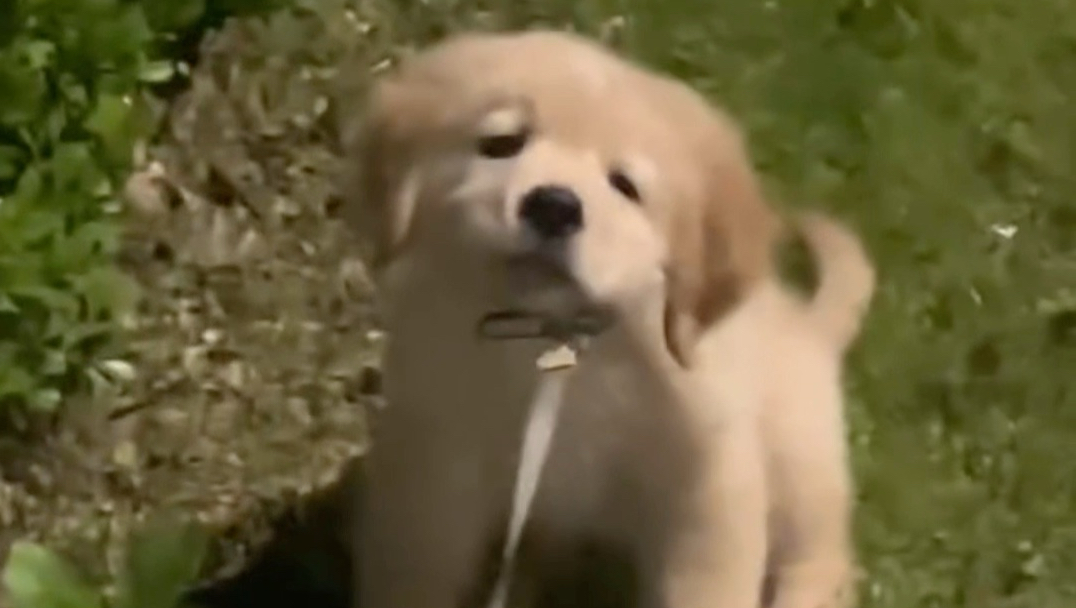 小狗第一次狗叫,把自己给惊到了