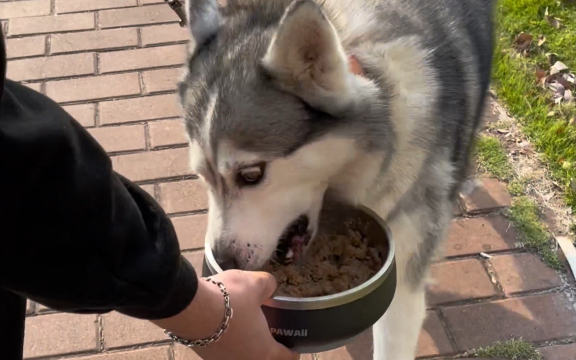 边牧宁愿吃狗粮也不肯吃榴莲,二哈却吃得津津有味!