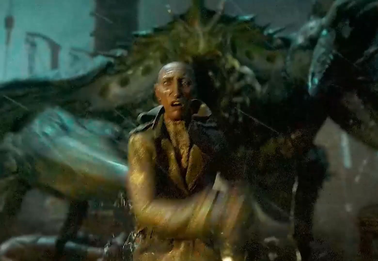 男人惊恐的发现自已的身体与皮肤,正在与路面融为一体