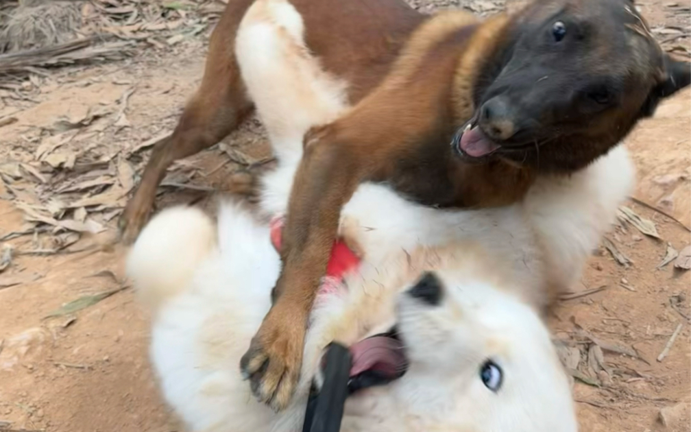 家里有两只性格非常不同的狗狗,一只社牛一只社恐