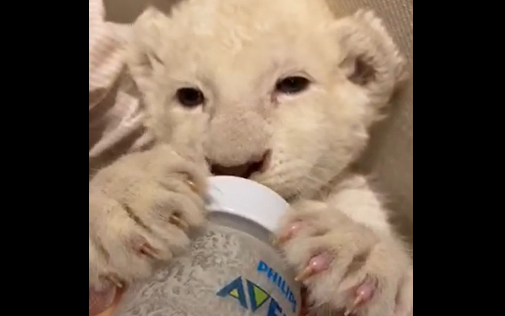 小狮子居然学会了自己开门 给大家看看白狮的近况