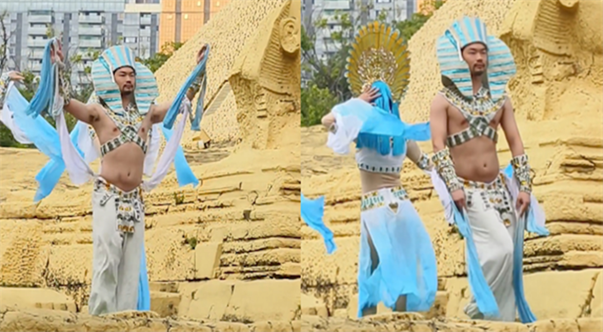 男演员在景区跳肚皮舞,舞姿妖娆让人直呼厉害:比女演员扭得还好