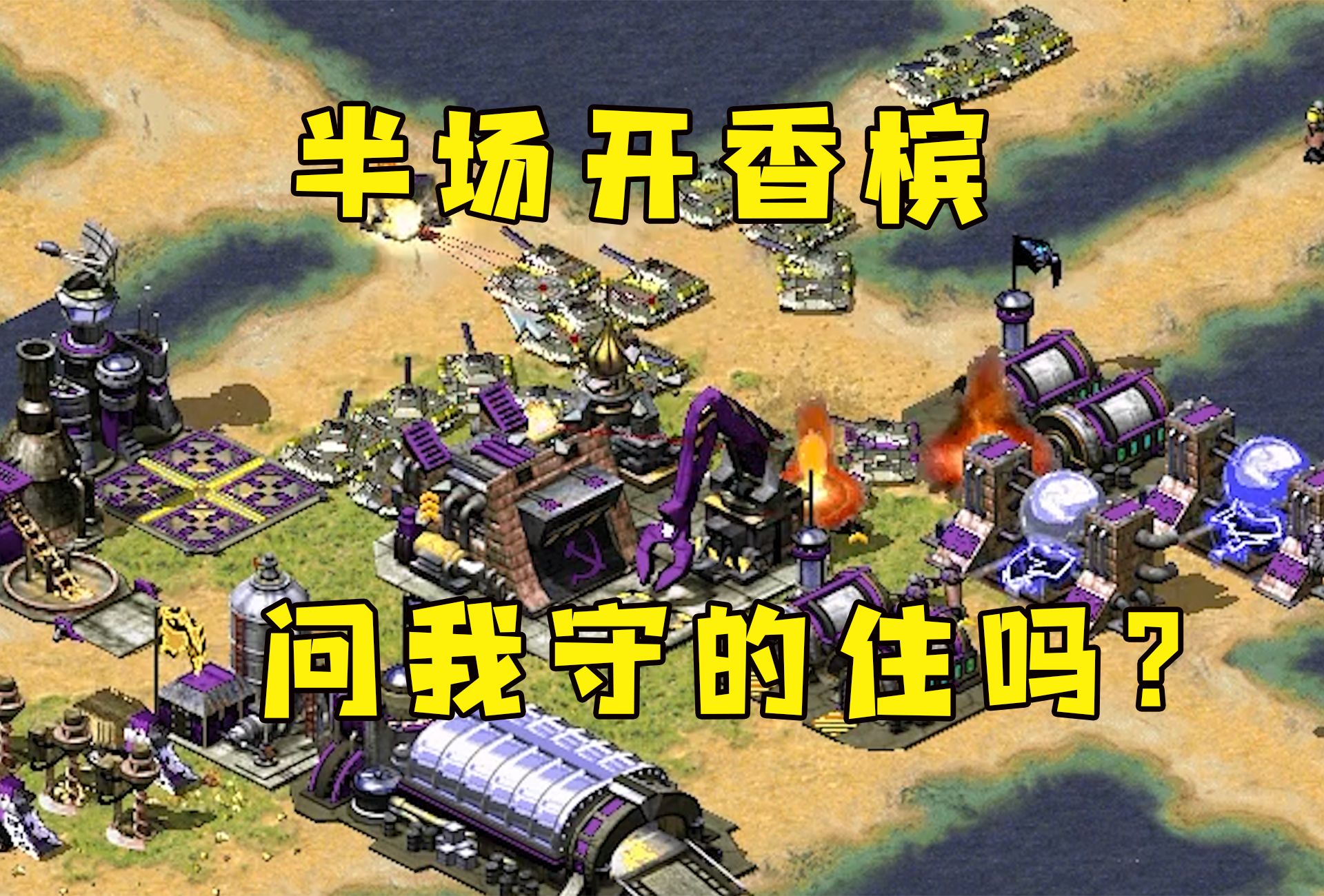 红警小块地以一敌四攻防转换!基地关围墙谁先动谁完蛋!
