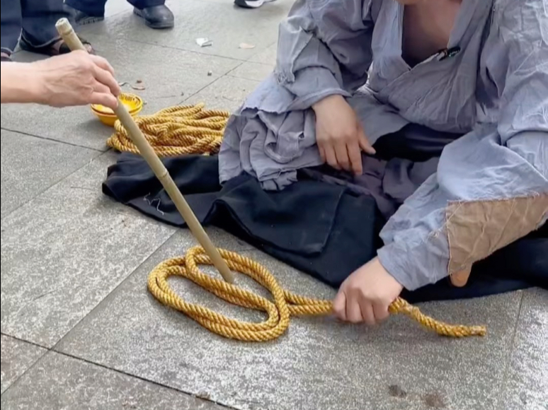 大爷手指绑钢丝穿越大树,今天终于破解!