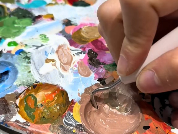 清理一块干透了的颜料调色盘