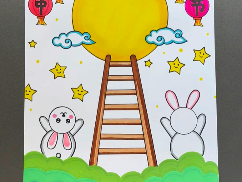 迎国庆贺中秋主题画来啦,好看又好画!#国庆节主题画 #中秋节主题画 #迎国庆贺中秋手抄报 #儿童创意美术