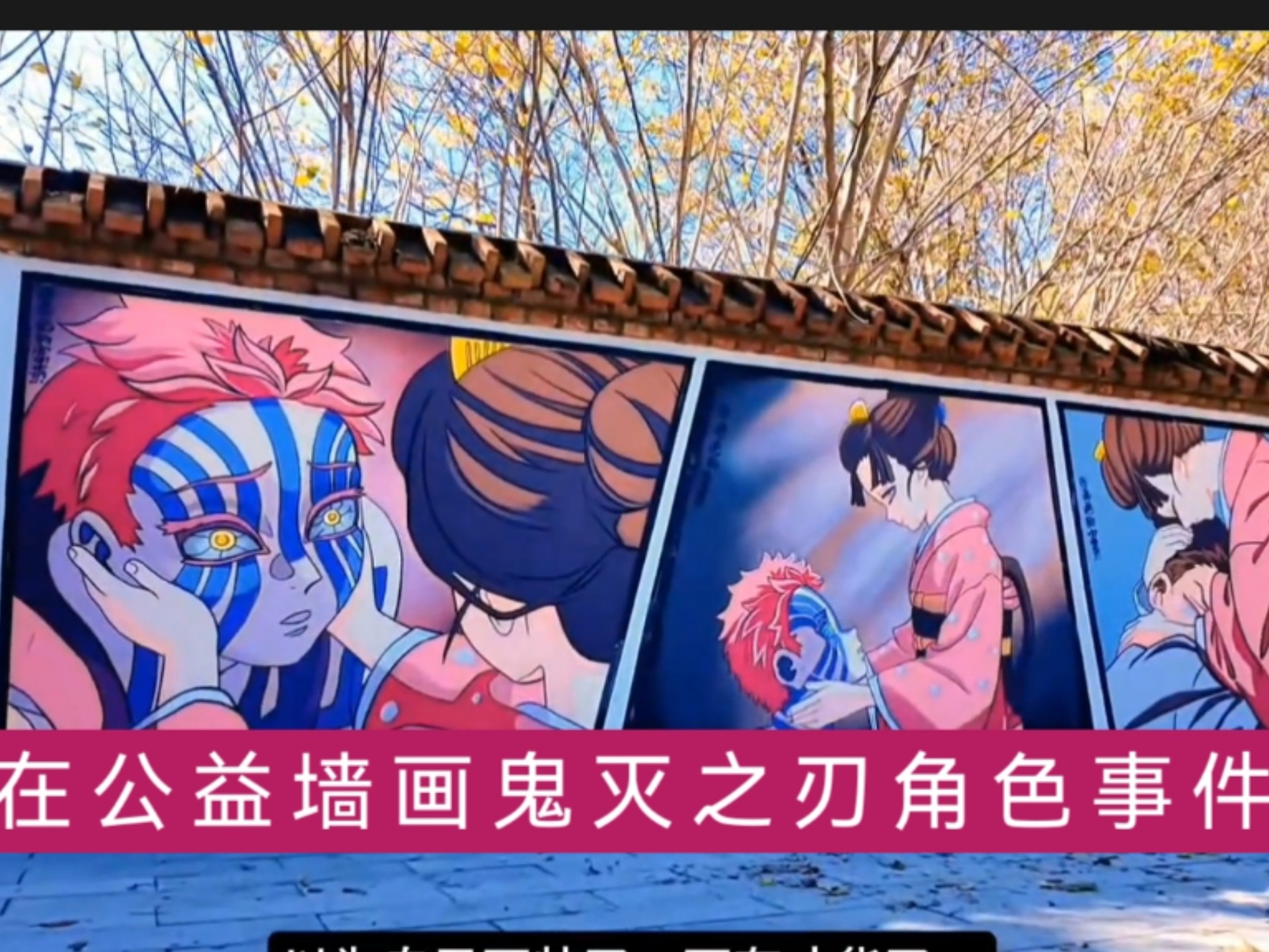 合肥街头在公益墙上画鬼灭之刃角色事件!