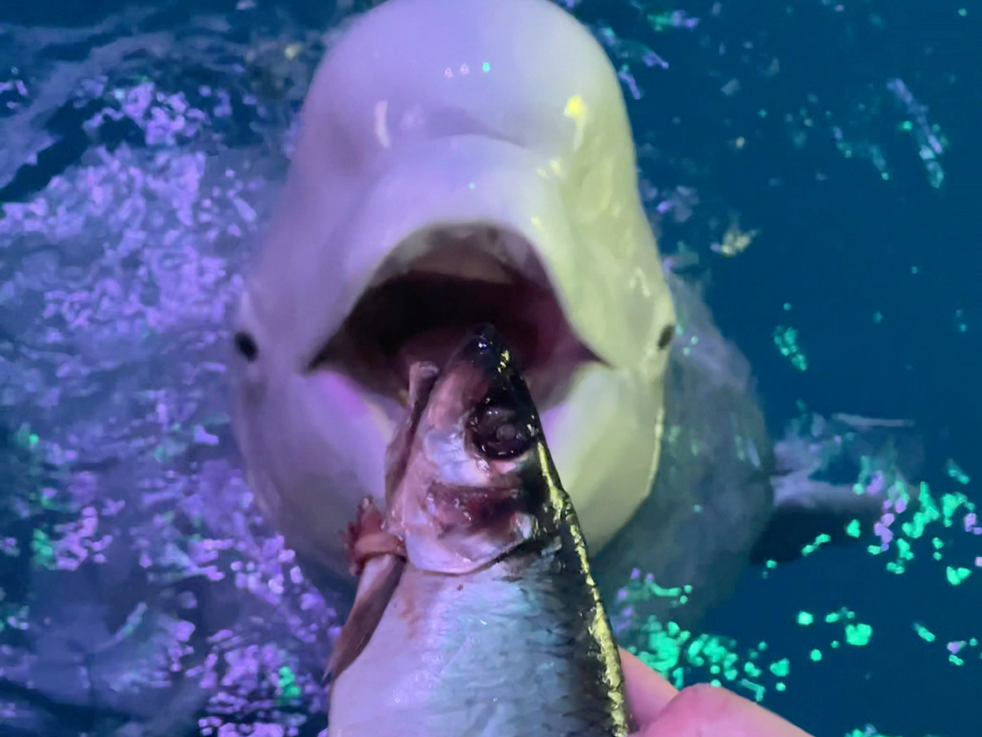 不光白鲸吃冰,海豚也需要吃冰块呦