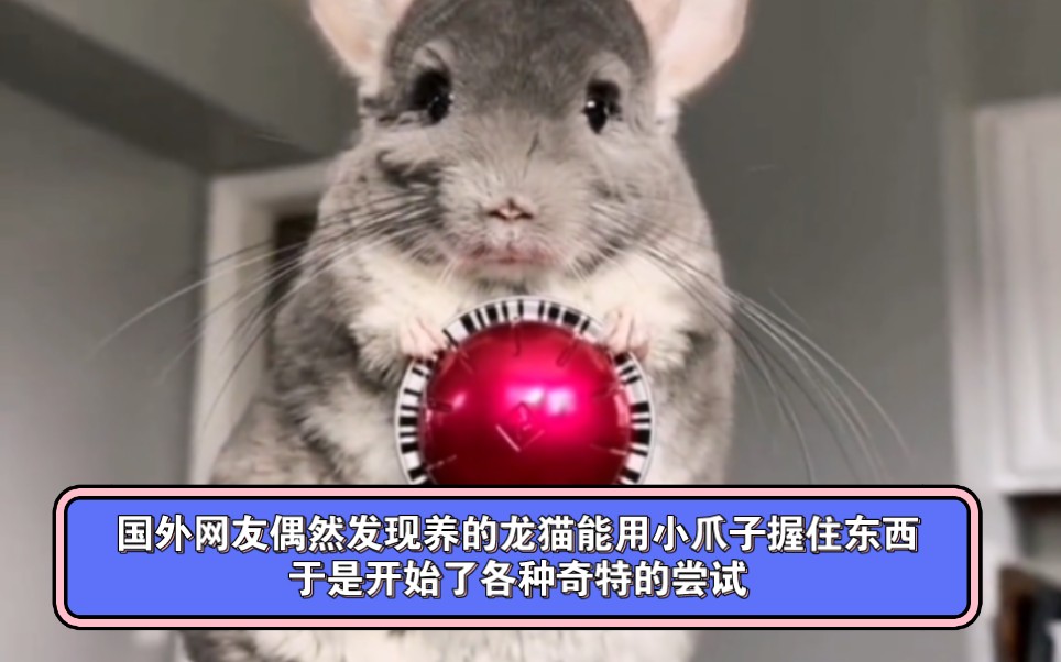国外网友偶然发现养的龙猫能用小爪子握住东西,于是开始了各种奇特的尝试,这也太可爱了叭
