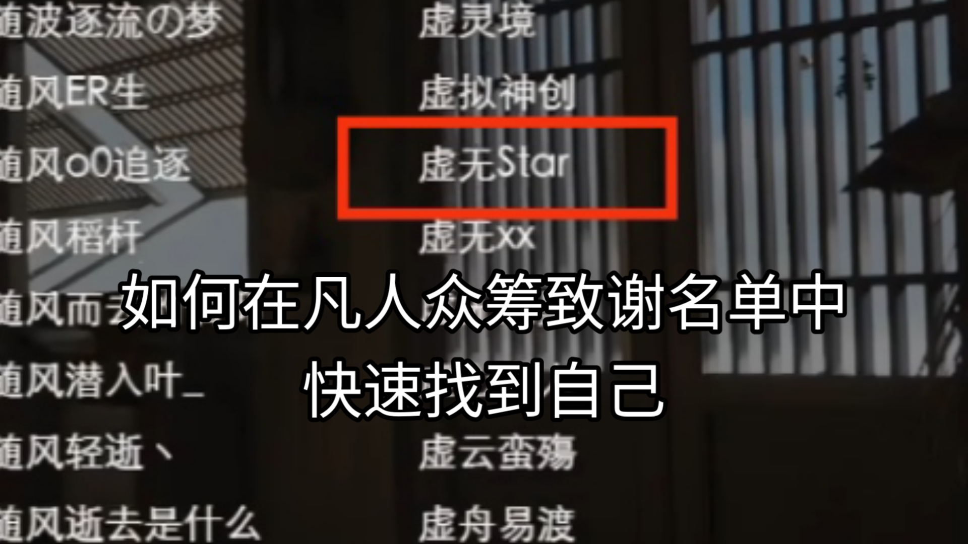 如何在凡人众筹致谢名单里快速找到自己