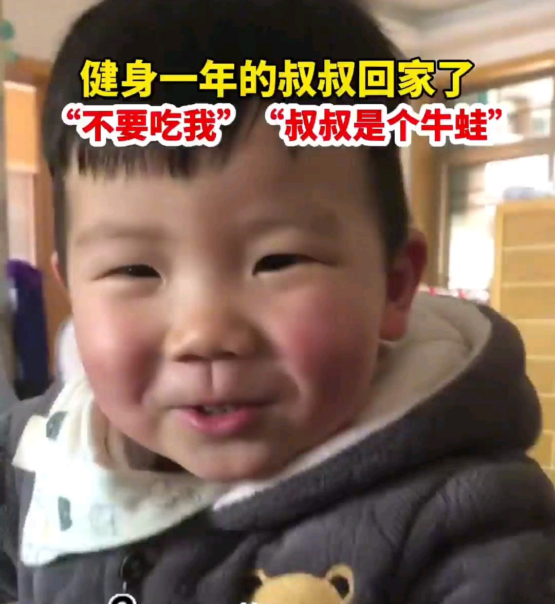 健身一年的叔叔回家了。“不要吃我!”“叔叔是个牛蛙