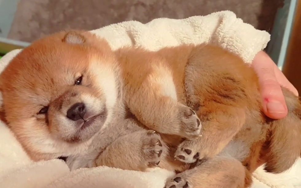 小不点柴犬被阿爸逮住了.....不敢动不敢动