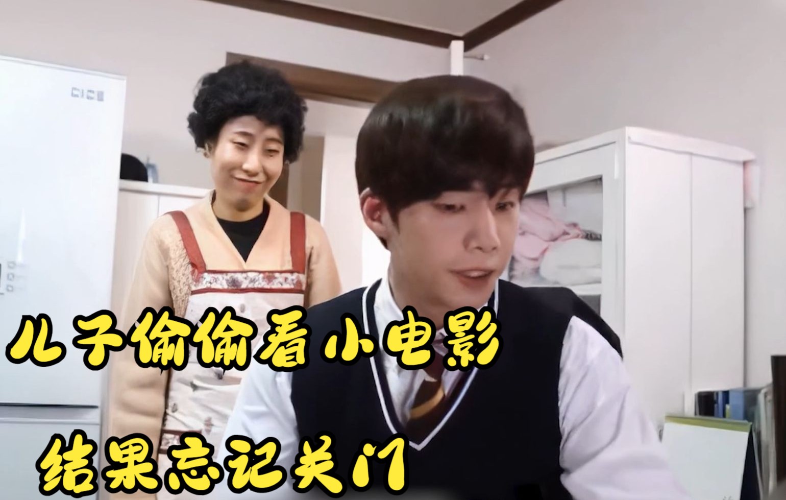 儿子偷偷看小电影,结果没发现母亲就在背后